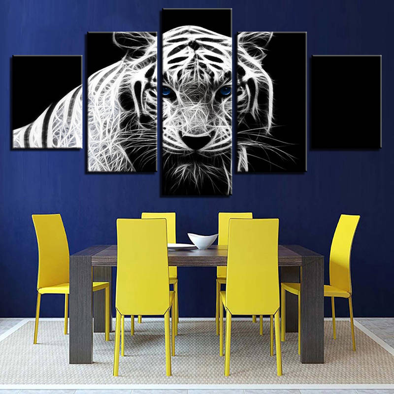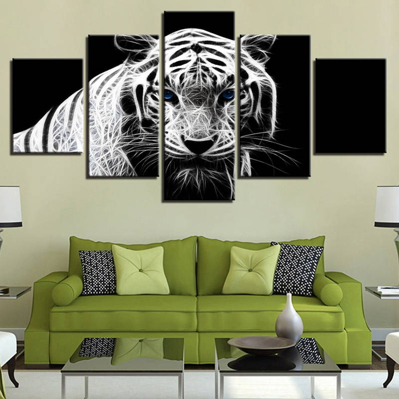 5PCS Modern Home Bedroom Wall HD White Tiger Art Picture Spray Painting Wall Sticker