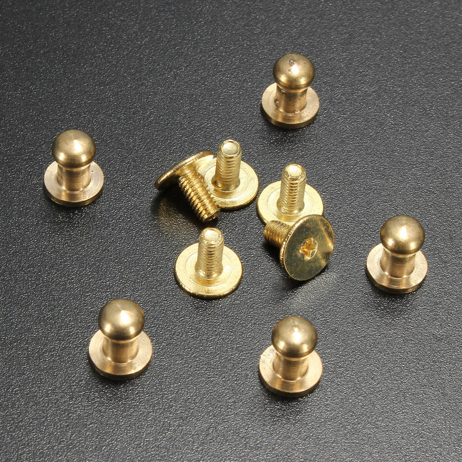5pcs Stud Screw Round Head Solid Brass Nail Rivet Chicago Button DIY Leather