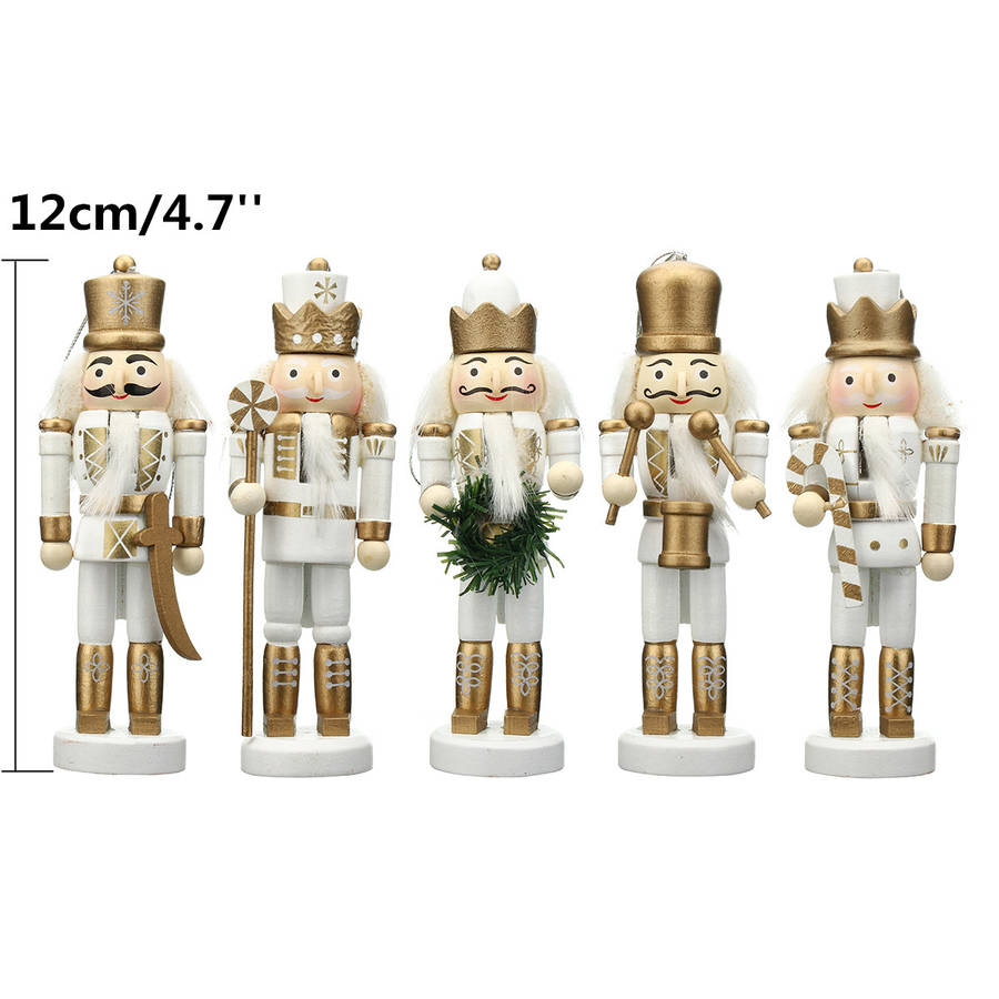 5Pcs Wooden Nutcracker Soldier Handcraft Puppet Doll Toy Ornament Christmas Gift Home Room Decoratio