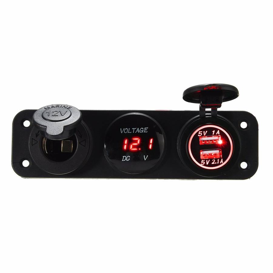 Name: Dual USB charger + voltmeter+ 12V socket + 3 hole panel marine car boat LEDColor: Green / red