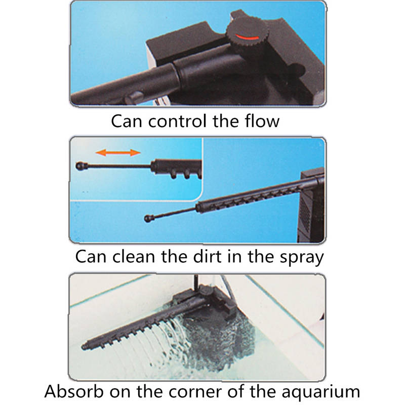 Feature: Designed for submersible use only with adjustable spray bar to increase oxygen levels Corner design for positioning into the corner of any aquarium tank Filter sponge included inside the unit Suction cups for attaching to the corner or side of your tank