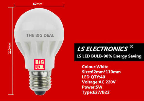 5W LED Lamp Bulb - 90% Energy Saving - Screw E27