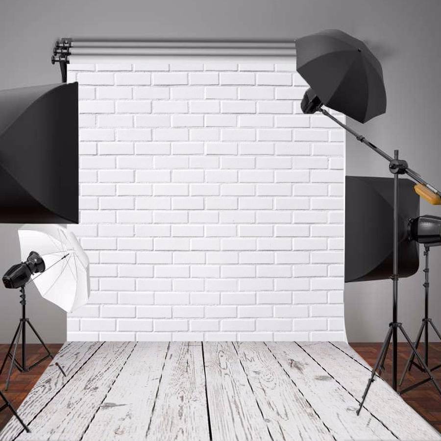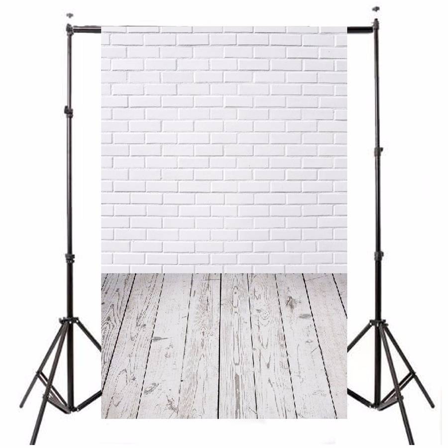5x7FT Vinyl White Brick Wall Wood Floor Backdrop Studio Prop Photography Backgr