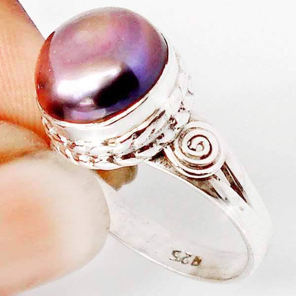 6.56cts EXOTIC BLUE TITANIUM PEARL ROUND 925 SILVER HOLIDAY RING size 7.5