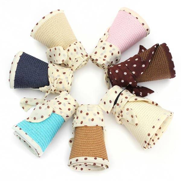 6 Color Girl Summer Casual Polka Dot Bow-knot Beach Sun Hat Straw Cap
