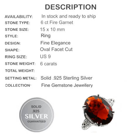 6 CT ART DECO FIRE GARNET SOLID .925 STERLING SILVER RING SIZE 9