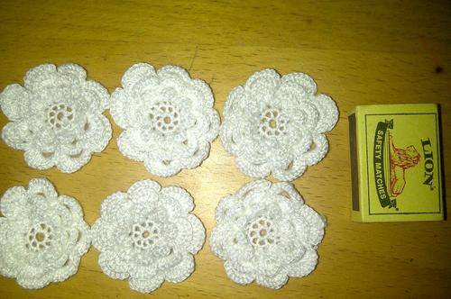 Set of 6 Hand crochet White flower, motif, applique 2ply yarn ,surgestion: add button stitch to headband,beanie,hat ext.Glue to scrapbook