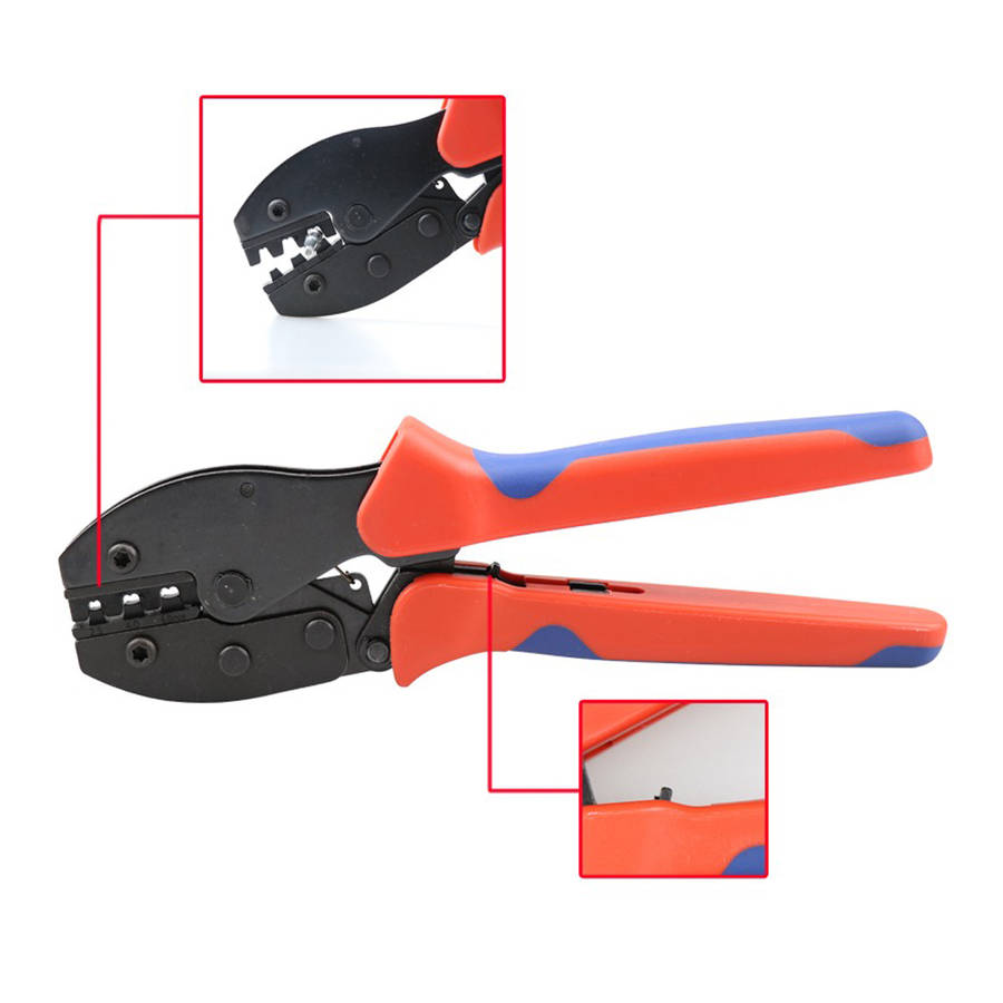 - Professional wire crimper tool with self-adjustable ratchet mechanism and wire stripper, for easy operation.