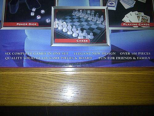 This is a 6-in-1 glass board game collection. Still brand new in the box, never been used.