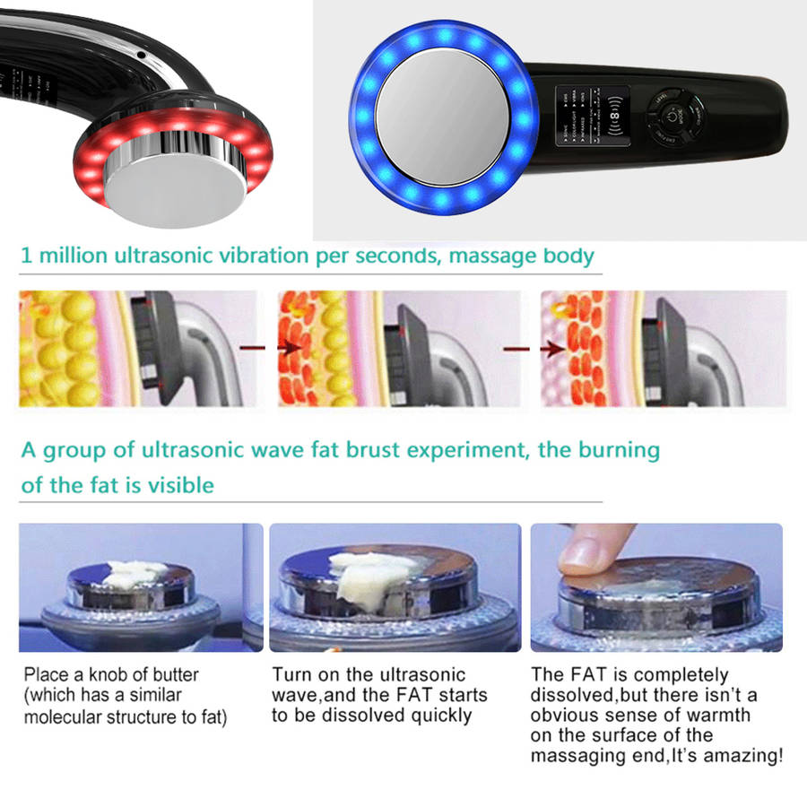 Ultrasound: Fat burning body (1 million high-frequency microseisms per second, which can make volume changes and movements in every cell of the body tissue, accelerate metabolism and enhance tissue regeneration).