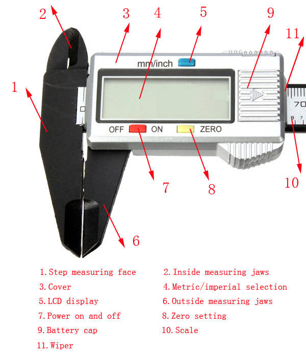 Instructions:1. before using the digital caliper, clean the surface of the protective sticker with dry and clean cloth(or soaked with cleaning oil).