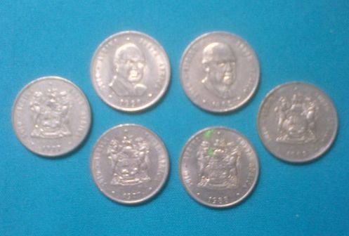 6 OLD SA 1 RAND COINS.