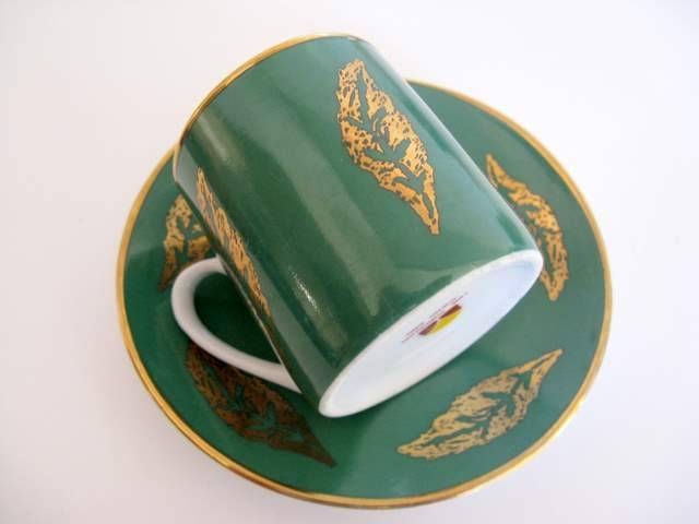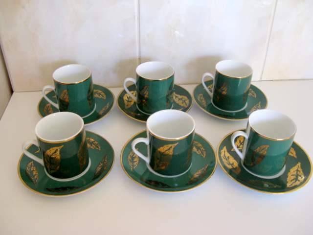 6 coffee cups and saucers. The applied gold leaf on these coffee cups and saucers are good quality