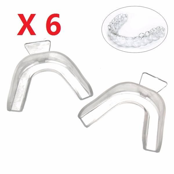 Features: 1. Two mouth trays: One for upper teeth and one for lower teeth 2. Great to prevent teeth grinding at night and whiten teeth Description: Item type: Mouth trays Material: Food-grade silicone Color: Clear Size: 7cm X 6cm X 1.3 cm Quantity: 6 Pairs(12Pcs) Package Included: 6 x Pairs Mouth Trays