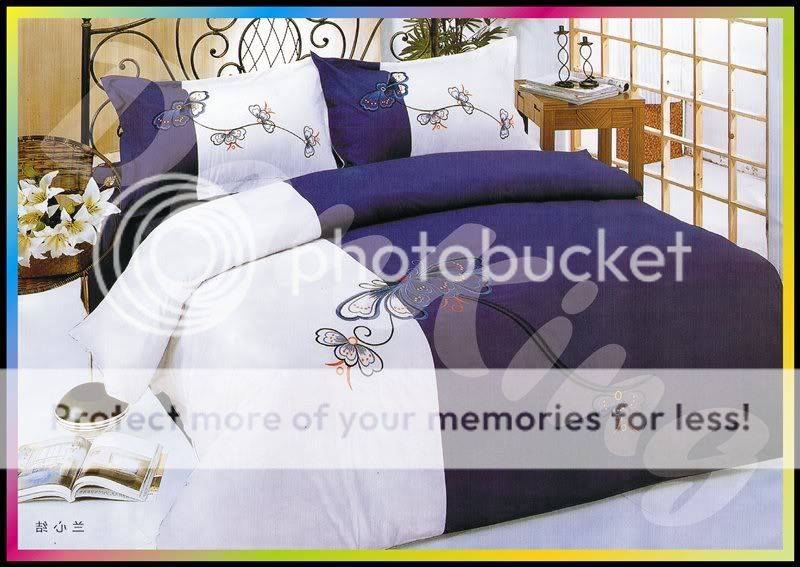 6 Piece Quality Cotton Bed Linen - Queen Size - Dark Blue & White Duvet Set