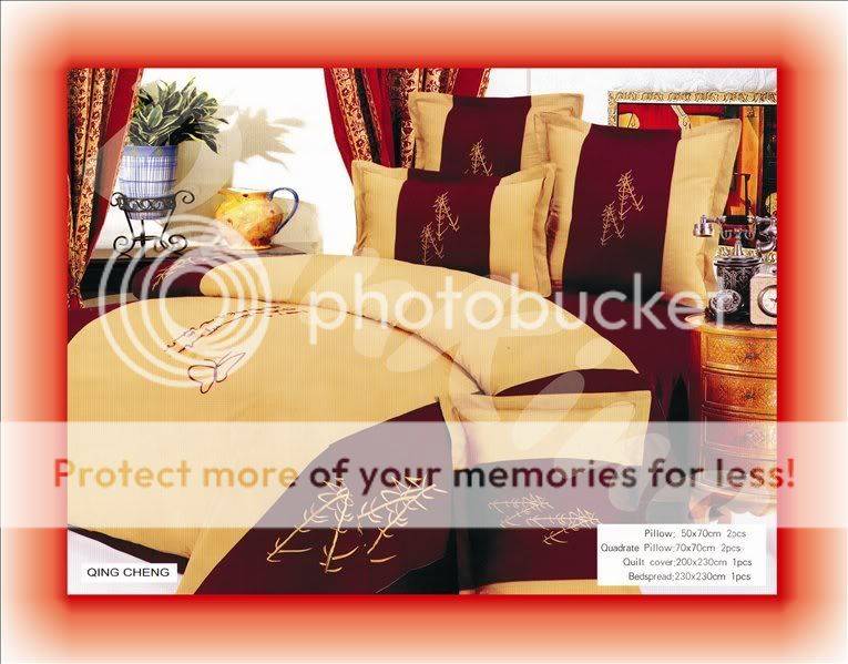 6 Piece Quality Cotton Bed Linen - Queen Size - Golden Burgundy Leave Duvet Set