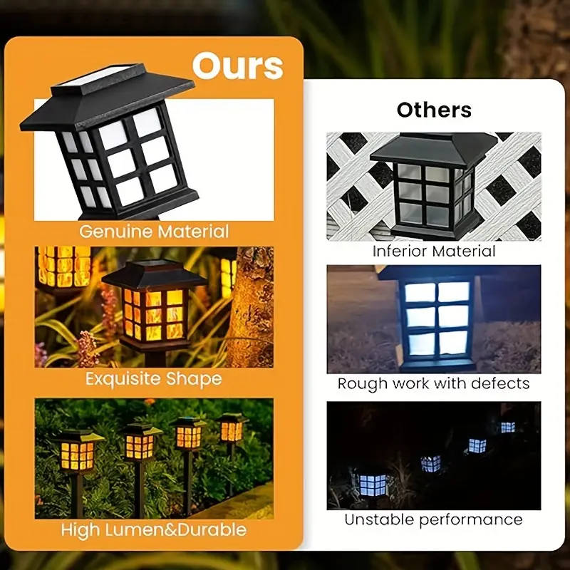 6pcs Solar Flame LED Path Lights - Outdoor Garden and Lawn Decorations, Warm Yellow Light Effect, 10 Hours Battery Life, Black Crystal Decorations, Great for Christmas, Patio and Landscaping, Solar Garden Lights