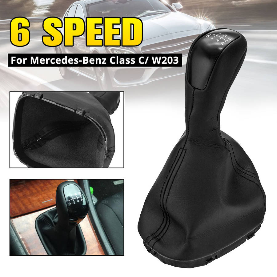 6 Speed Gear Shift Knob with Gaiter Boot Cover PU Leather for Mercedes-Benz Class C W203