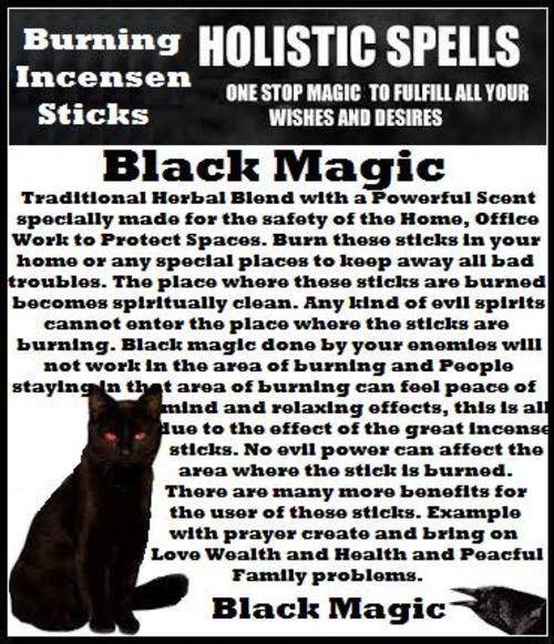Burning of mystical incense drives away bad evil energy in you and your surroundings by bringing a more relaxing atmosphere of peacefulness and calmness in a protective area or environment. Can also be used to attract Love Wealth and Financial Power and brings family joyfulness. This offer is for 6 tubes of 20 incense sticks per tube of Black Magic burning Incense helping you move forward in a more positive way of thinking with Total Evil Block Out