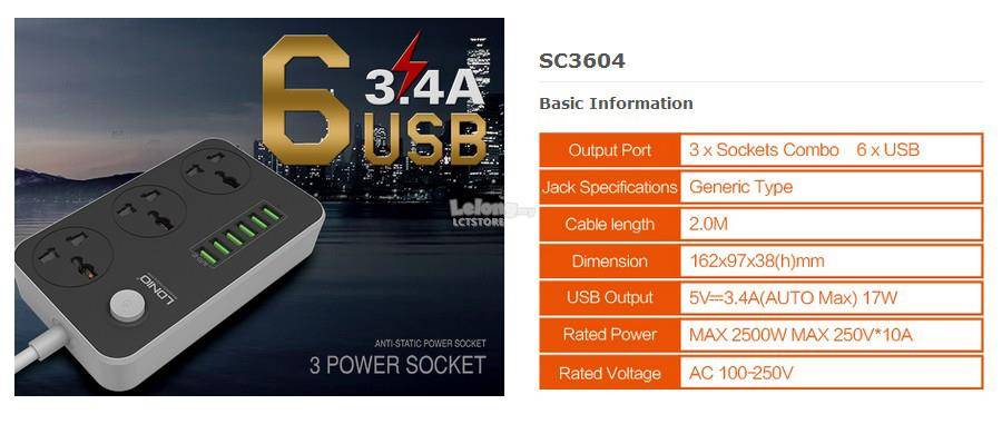 6 USB Desktop Charger with 3 Universal Power Sockets