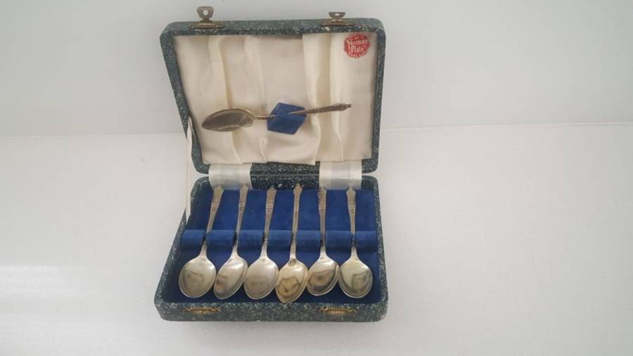 6 VINTAGE APOSTLE TEASPOONS & JAM SPOON IN ORIGINAL BOX