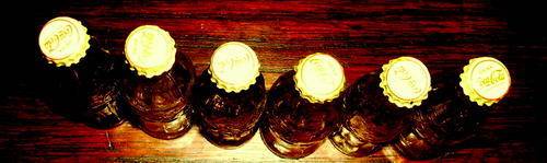 All still sealed with their metal caps- the Coke has dissapated through the years and remnants of the liquid are still evident in the bottles. A must for collectors!!! From the 1950's I guess.