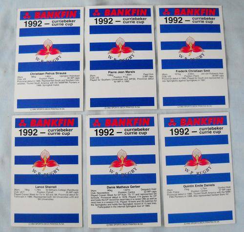 6 x 1992 WESTERN PROVINCE CARDS-RUGBY SPORTS DECK- CURRIE CUP SERIES-EXCELLENT CONDITION-STORMERS