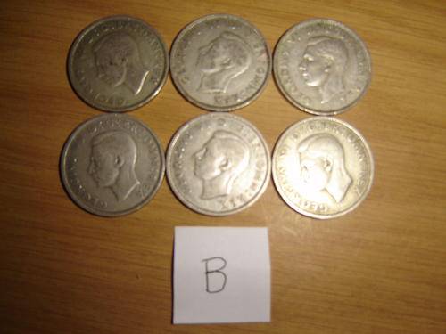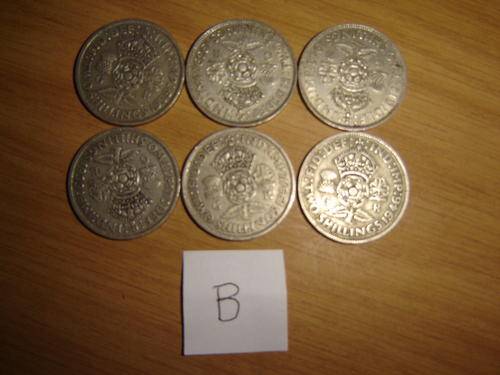 6 x GB 2 Shilling Coins - 50% Silver Content