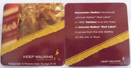6 X JOHNNY WALKER COASTERS : 9.5x9.5cm : CARDBOARD TYPE