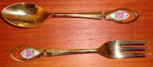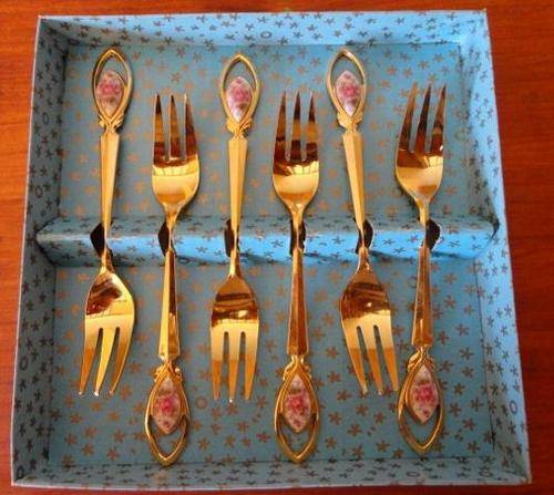 6 X TEASPOONS AND 6 X CAKE FORKS GOLD PLATED