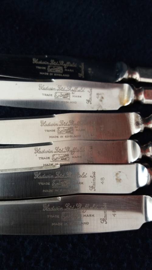 These 6 silver plated fruit knives are very sharp and in very good condition with just age related wear. It is stamped Sherborne on the handle and the maker's mark etc on the blade. It measures approx 17.5cm long. Note payment to be made by Monday after close of auction. Thanks for looking