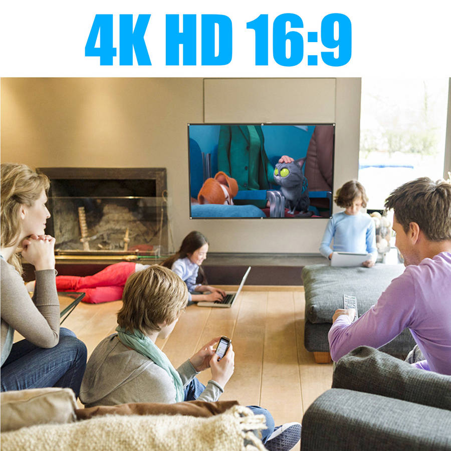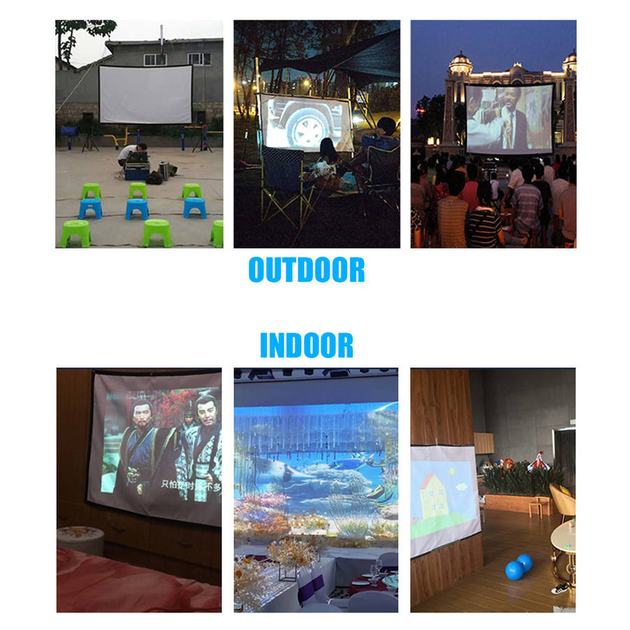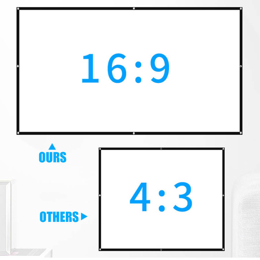 16:9 screen format, 60-120inch optional,super projection screen offers wide viewing area, brings you great vision enjoyment, perfect for theater movie, conference, school and outdoor