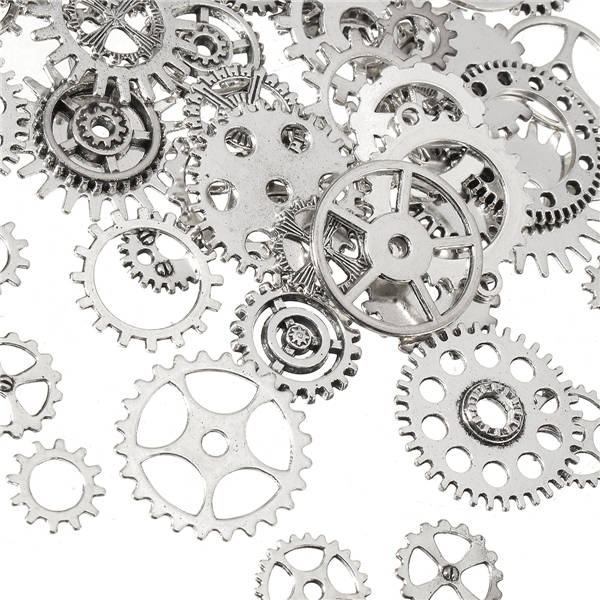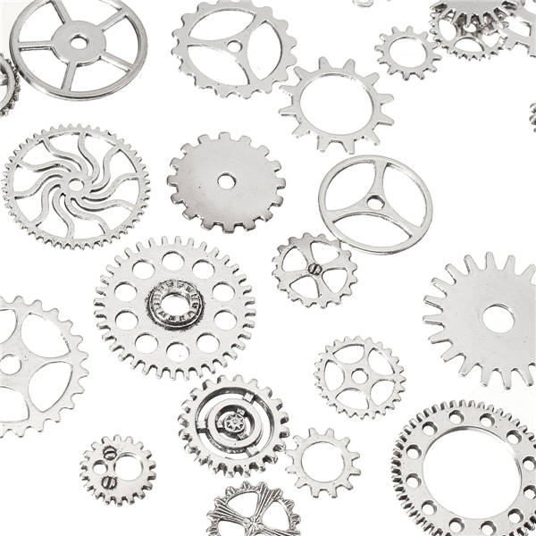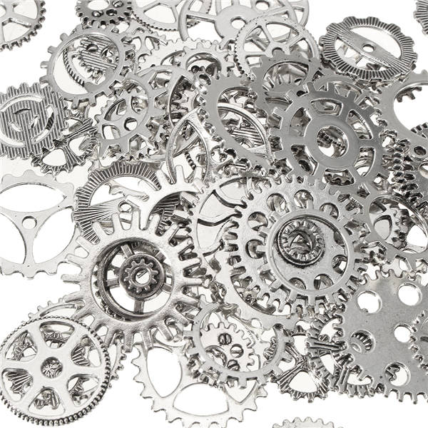 Package weight: 0.10 kg Description: 60-70Pcs Steampunk Jewelry Altered Art Craft Cyberpunk Gear Wheels Decoration Part Specifications: Material: Alloy Color: Silver Quantity: Apprex. 60-70 pcs Size: Approx.12-26mm / 0.5 - 1.02 inch Features: - Vintage Mixed style gear pendants , fashionable and personalize - Use ancient silver color alloy as material, full of old steampunk style - These are tiny to medium pieces, great for decorating earrings, rings, necklaces, charms or other handmade crafts Package Includes: 1 x Pack of Charm Gear Pendants(60-70 pcs) More Details: