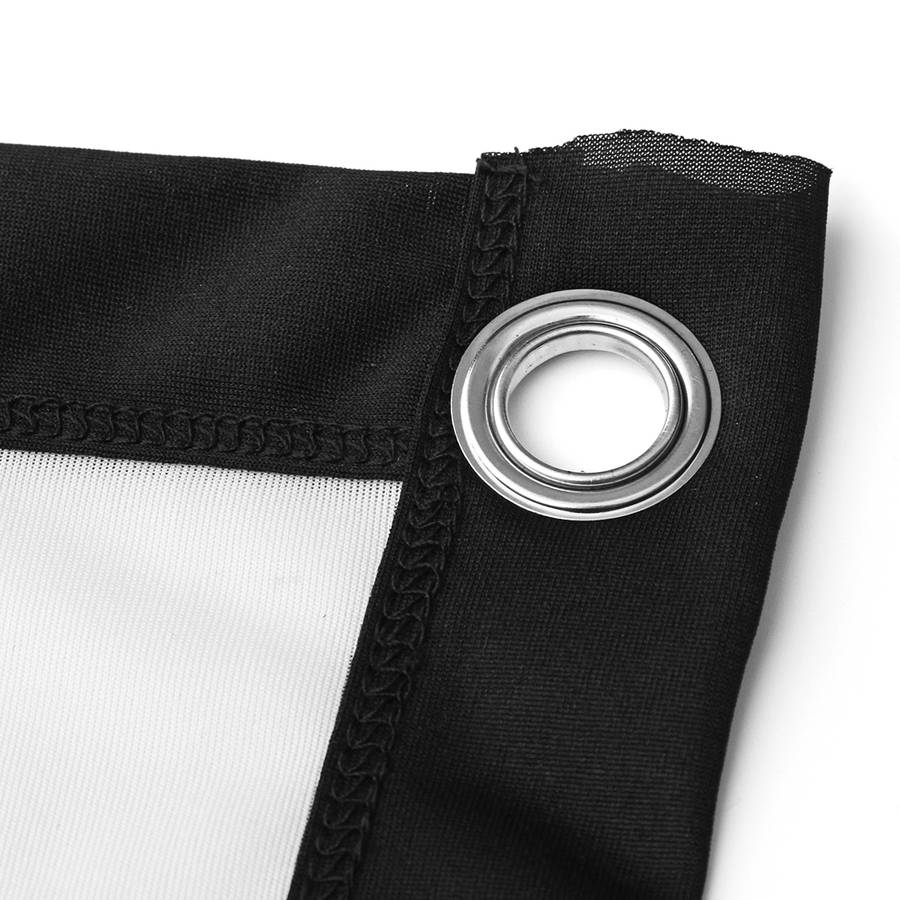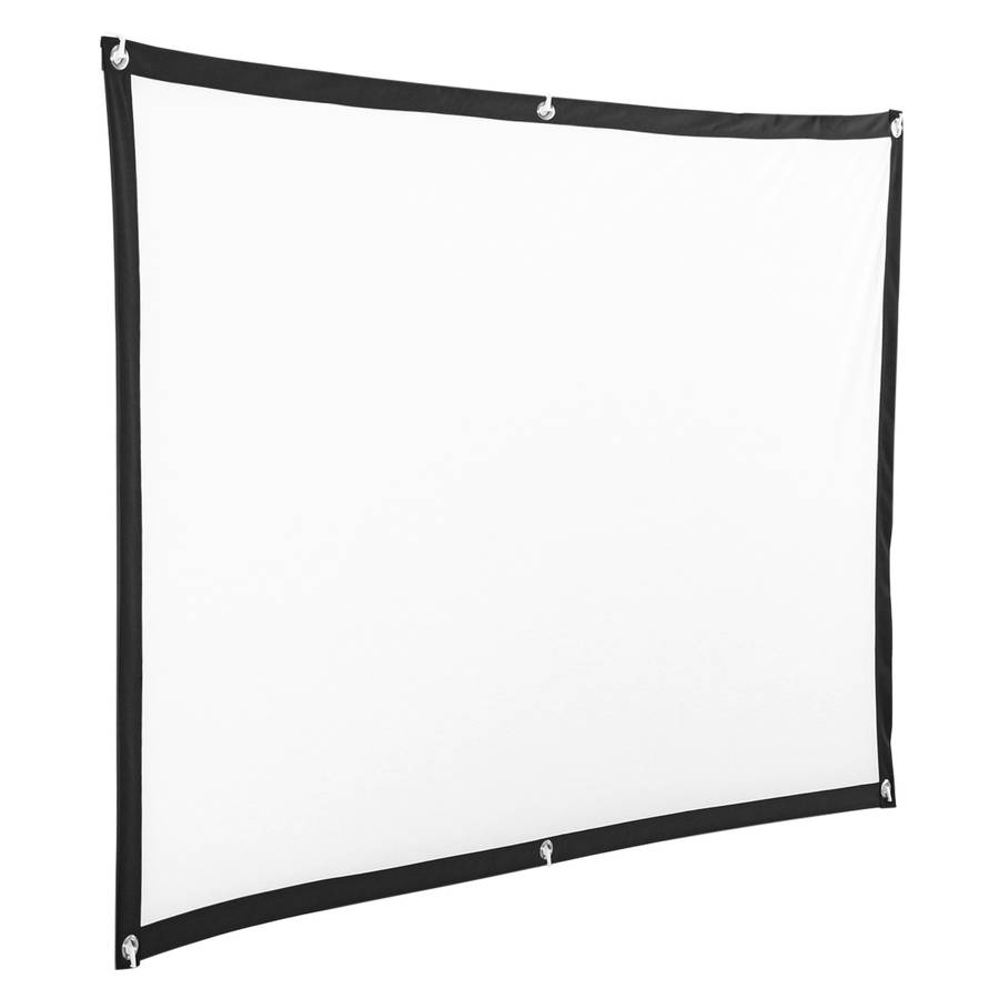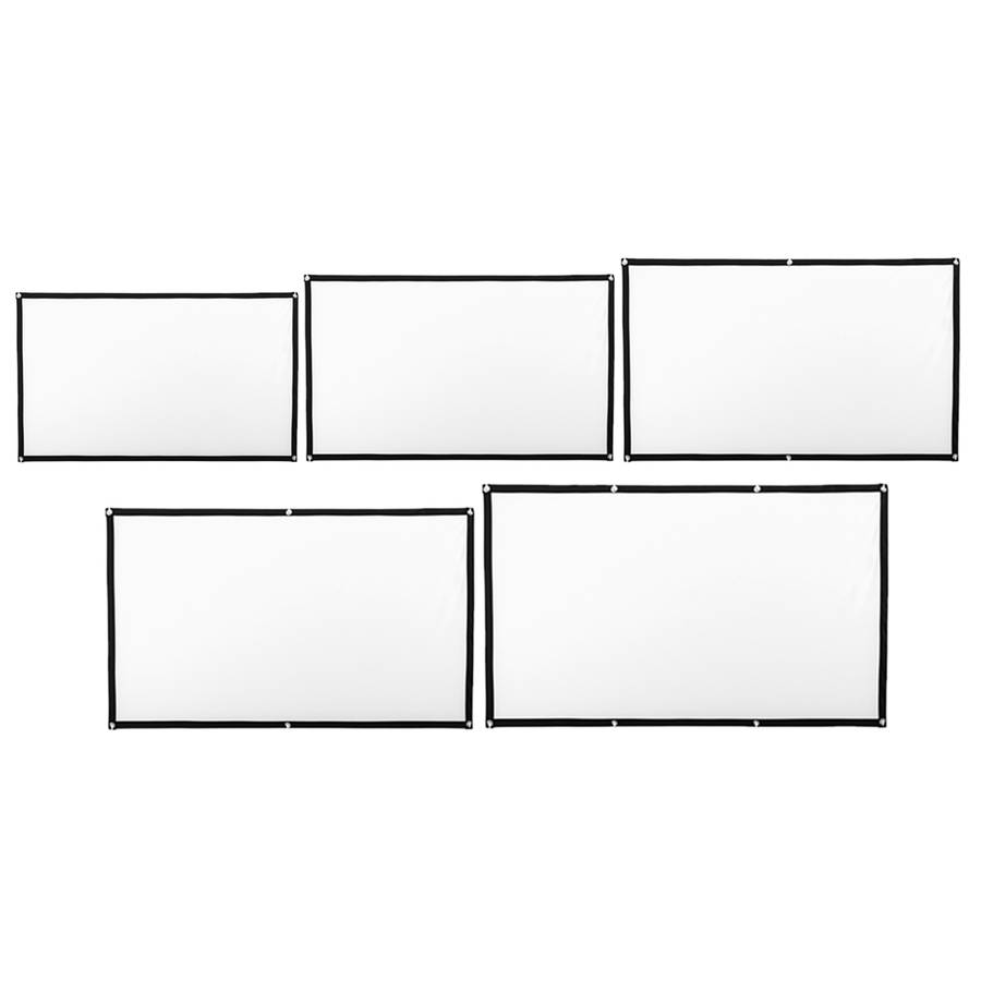 Specifications: Size: A: 60 inches, B: 72 inches, C: 84 inches, D: 100 inches, E 120 inches Aspect Ratio: 16:9 100% polyester material, folding packaging small size, no crease, the use of good effect A total of 4-8 holes around, with small hooks, easy to install Matte white with 1.1 gain for HD projection reproduce vivid and lively image To stick it on a flat surface, or hung by a rope as well as pinning it to the wall Ideal for meeting and conference, classroom training, public display, home cinema, party, KTV, playing game, backyard movie etc