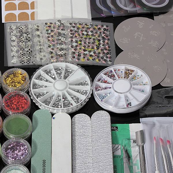 60 Acrylic UV Powder Glitter Glue Nail Art Tool Kit Set Feature: 60 different colors acrylic powder. Creating beautiful nail for long lasting sparkle nail tips. Suitable for professional use or home use.