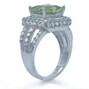60% OFF - Green Amethyst & White CZ Glamorous Sterling Silver Ring