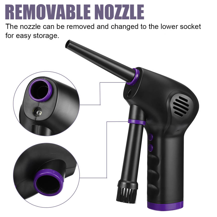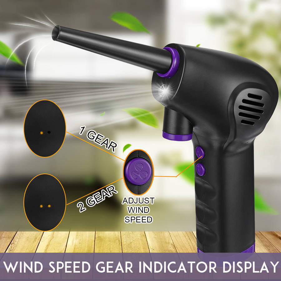 Features: ▲Deep Cleaning & Extensive Utilization This air duster tops the market by its capacity to produce a powerful thrust of air at almost 70m/s for deep cleaning of the microscopic dust. Starting from printed circuit boards to computers, electronic instruments, medical devices, and many more such areas can be cleaned by this mini duster which your traditional wiper or duster cannot clean. ▲Fast Charging & Speedy Functionality This air duster is specially designed to get charged faster with a 2A adapter (not included). Its motor allows the maximum rotating speed to reach up to 45000 RPM. ▲Eco-Friendly & Energy-Efficient Saving gas and water has now become our primary responsibility. And to support this cause this device to be made highly environment-friendly as it allows more than 5000 times of use, resulting in saving a lot of energy. This mini duster is such a scientific device which keeps cleanliness hand in hand with eco-friendliness. ▲Lighting Design Refuse the dark, can also use at night, warm heart lighting design, illuminate the dark at night, let dust nowhere to hide.