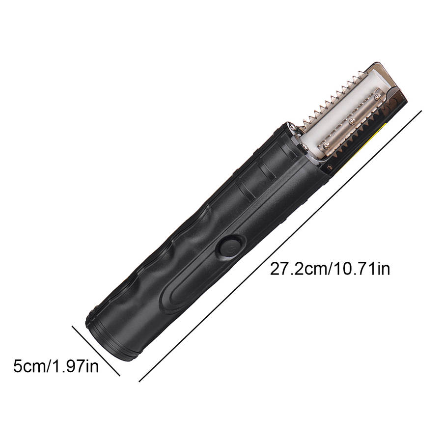 Features: - High-precision six-segment stainless steel cutter wheel, effective and fast scale removal, compact and powerful operation, greatly improving the efficiency of dephosphorization. - Transparent acrylic scale shield prevents fish scales from splashing around and protects hands from being hurt by the blade. - 2800mAh rechargeable lithium battery, DC5V direct charge interface, long battery life, smart series connection, safety, no leakage, no short circuit. - Good overall airtightness, insulating material, high waterproof grade, can be washed directly with water. - One-button switch, convenient and quick, easy to control.