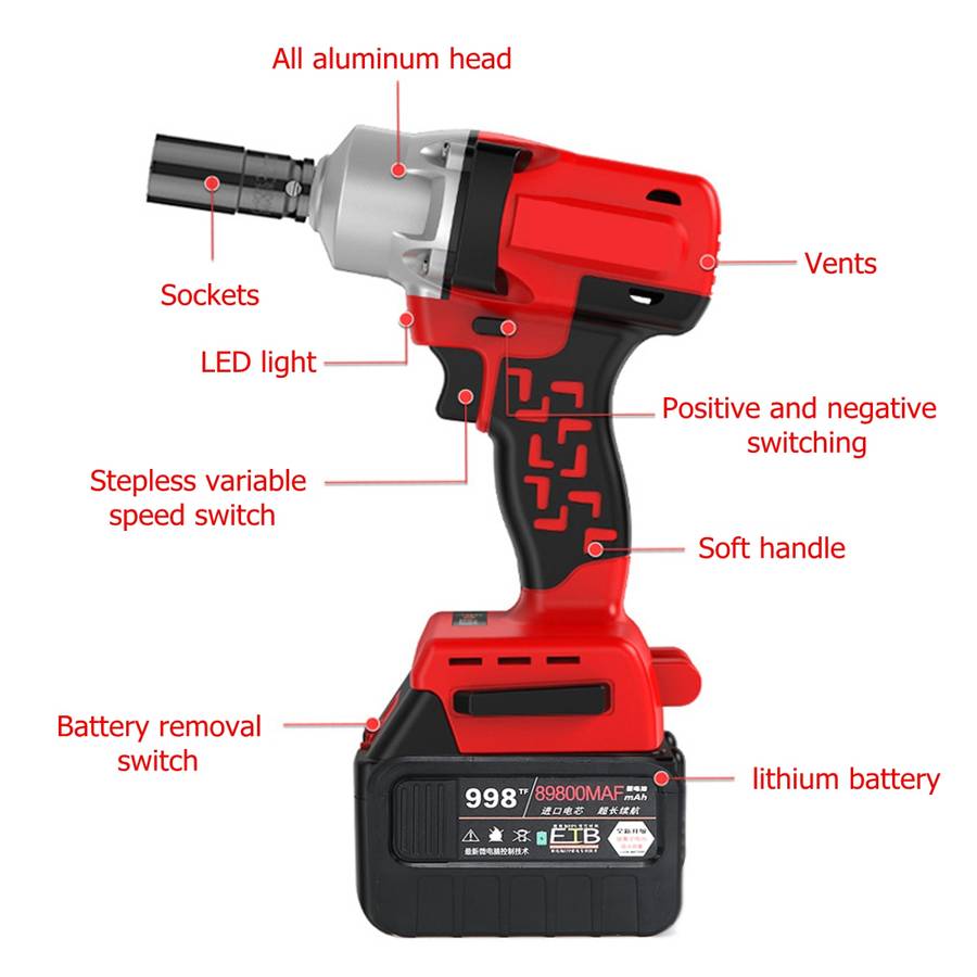 600Nm 89800mAh 1/2'' Cordless Impact Wrench Power Driver Electric Wrench Socket
