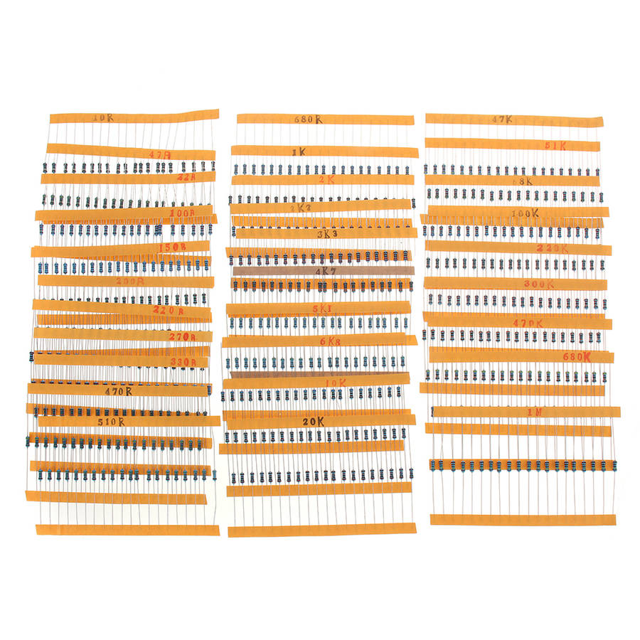 600pcs 30 values Metal Film Resistor Kit 10R-1M Resistor Pack 0.25W 1% | |||||||||