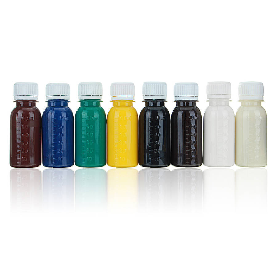 Package weight: 0.06 kg Specification Name: DIY Leather Dye Color: Coffee Red Black White Clear Green Yellow Brown Blue Capacity: 60ml Features a.Perfect for DIY Leather ,shoes bag margin Leather. b.For use on vegetable tanned or unfinished leather