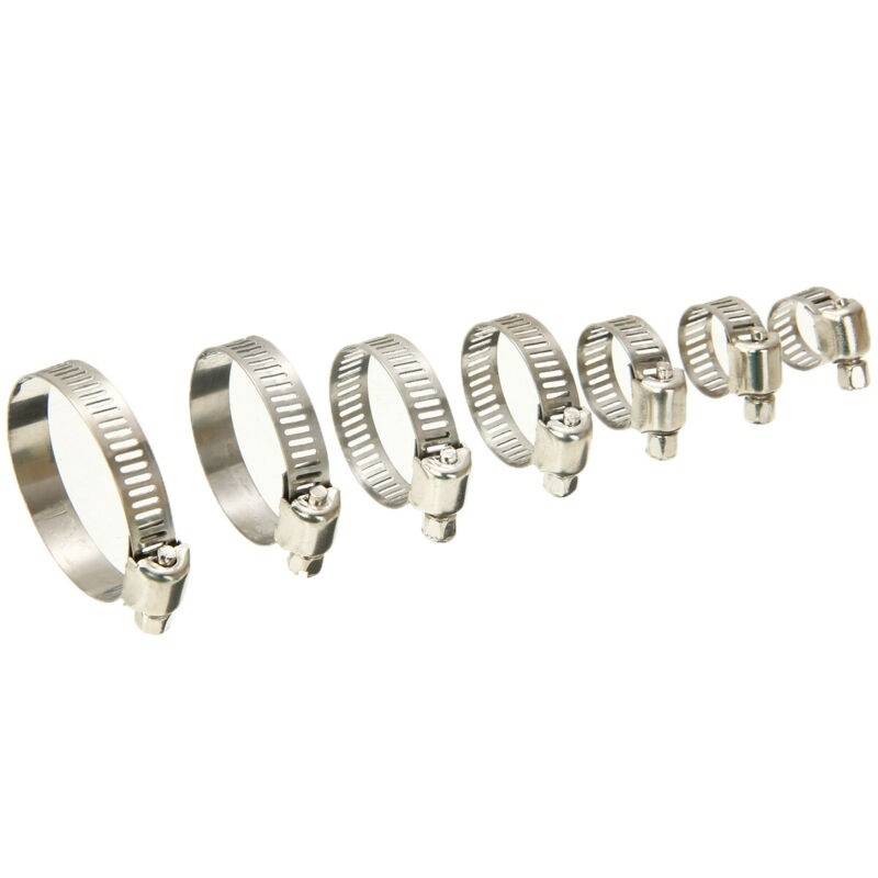 Product features 1. High Quality Stainless Steel Hose Clamp 2. Used in securing hoses around pipes or for automotive use 3. Stainless steel screw resists corrosion Package quantity: 60pcs Fit Hose Diameter: 8-12mm, 10-16mm, 13-19mm, 16-25mm, 19-29mm, 22-32mm, 25-38mm Package Includes: 8-12mm..........................10pcs 10-16mm........................10pcs 13-19mm........................10pcs 16-25mm........................10pcs 19-29mm........................10pcs 22-32mm........................5pcs 25-38mm........................5pcs