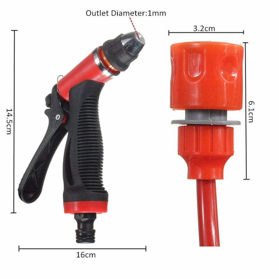 Description: Type: Portable & Vehicle-mounted Power: 60W high pressure water pump with build-in Pressure Switch Working Voltage: DC 12V (with car cigarette lighter adapter) Outlet water hose: 8m high pressure water hose Power Connecter: car cigarette lighter Note:Water Gun also can wash window,bathroom, flowers,etc