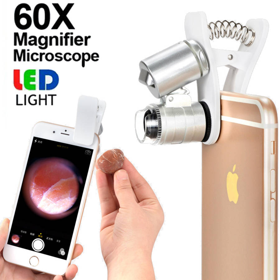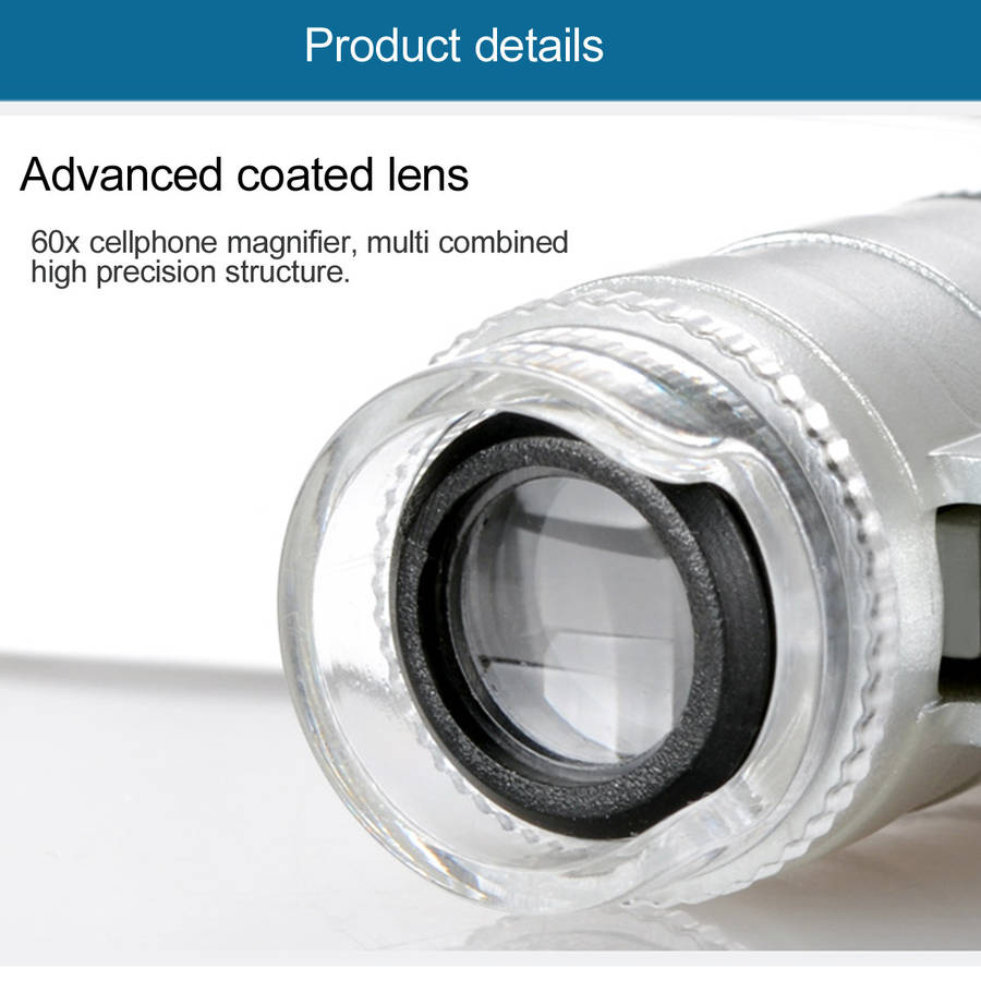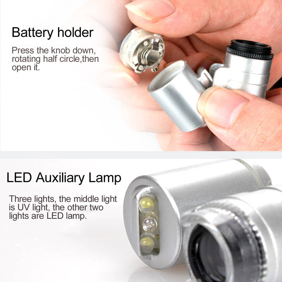 60X Handheld Mini Pocket Microscope Loupe Jeweler Magnifier LED Light Trendy