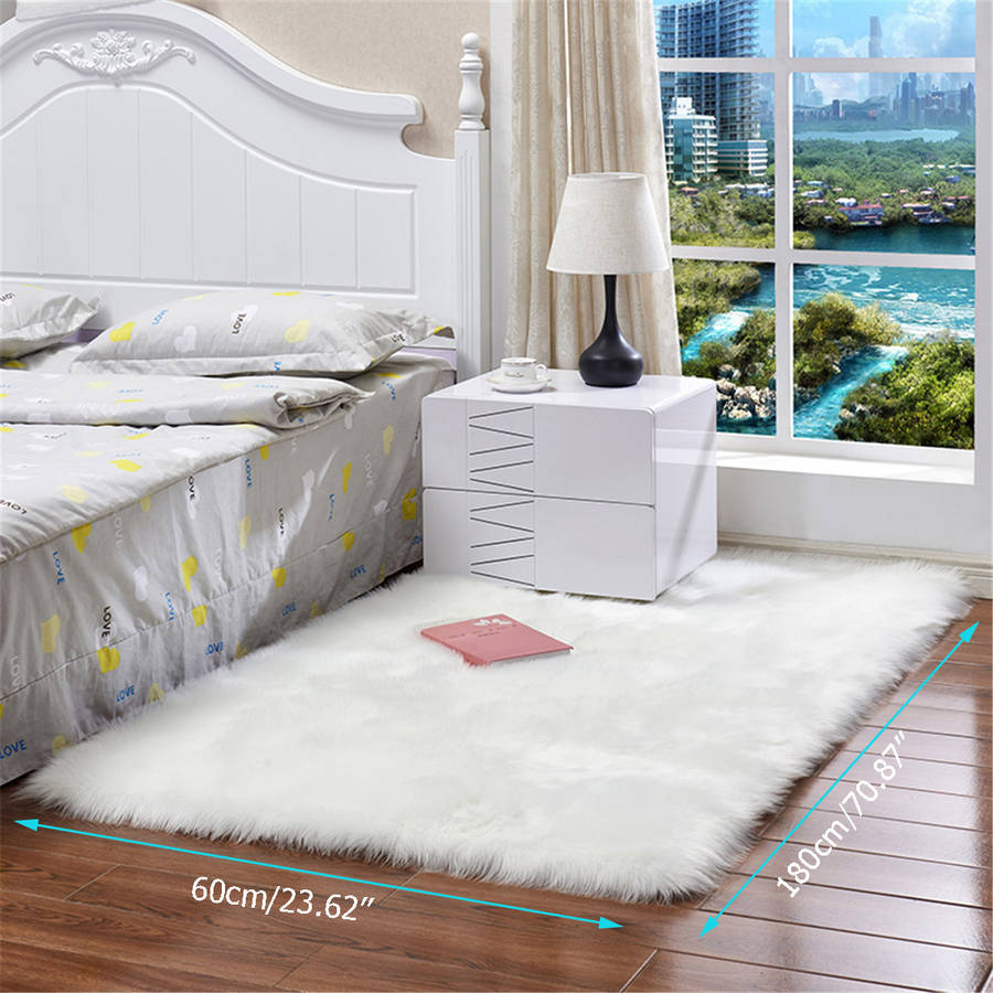 60X180cm Artificial Fur White Carpet Anti-slip Floor Mats Soft Fluffy Rugs For Living Room Chair Cushion Sofa