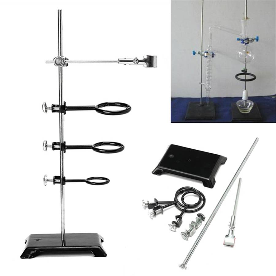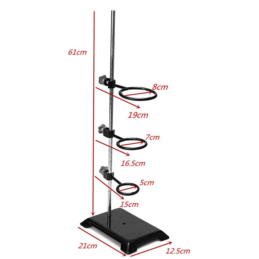 Specification: Material: Iron Pole Length: 61cm Base: 21.5x12.5cm Features: - Laboratory stand and clamp is a generally used lab instrument used for physics and chemistry experiment. - The iron stand for fixing and supporting a variety of instruments, commonly used in filtration, heating experiment. - Used in conjunction with alcohol lamp. Simple apparatus for laboratory chemical reactions. Package Included: 1 x Base 1 x Iron Pillar 1 x Beaker Clip 1 x Fixing Clip 3 x Iron Frame Rings