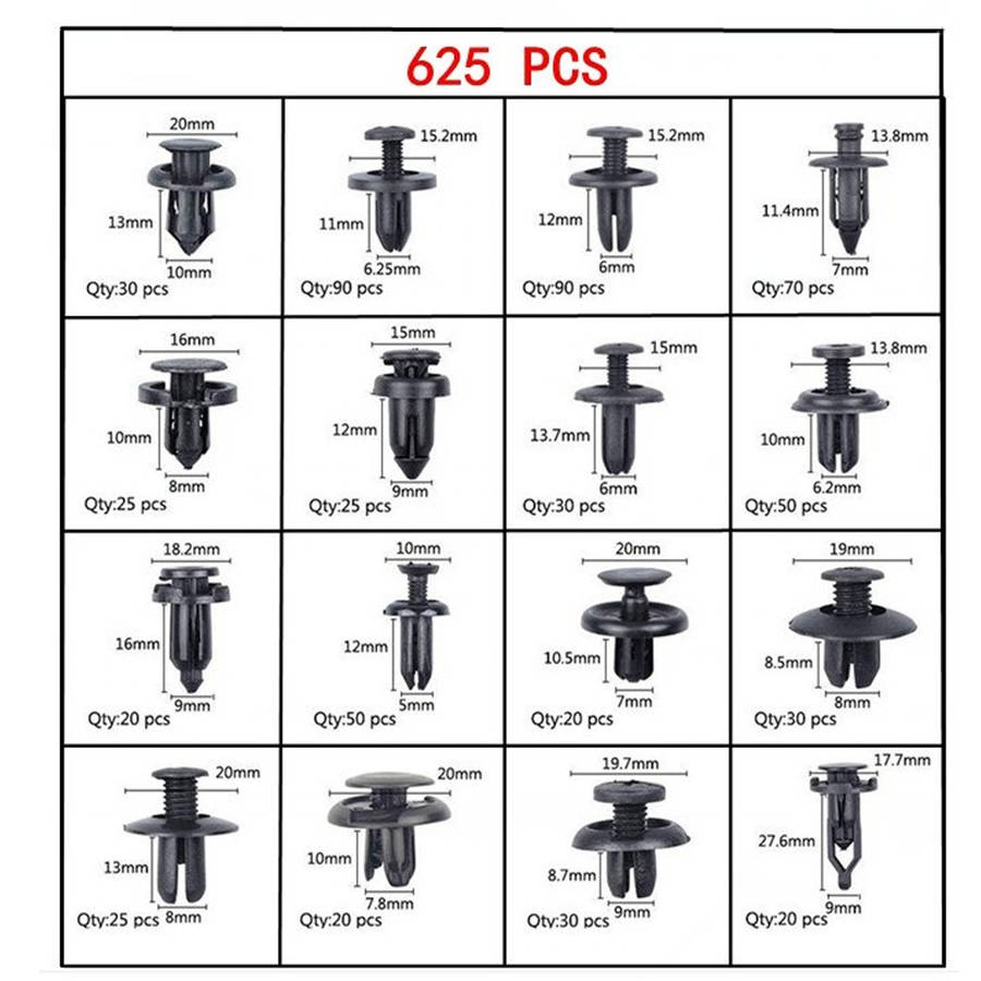 Universal Car Clip Side Skirt Bumper Door Trim Install Push Fastener,625 Pcs,16 Sizes.