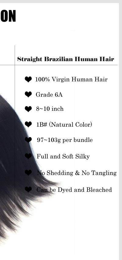 6A Brazilian 100% Human Hair Straight 8"~10" 100g Natural Black [one bundle only]