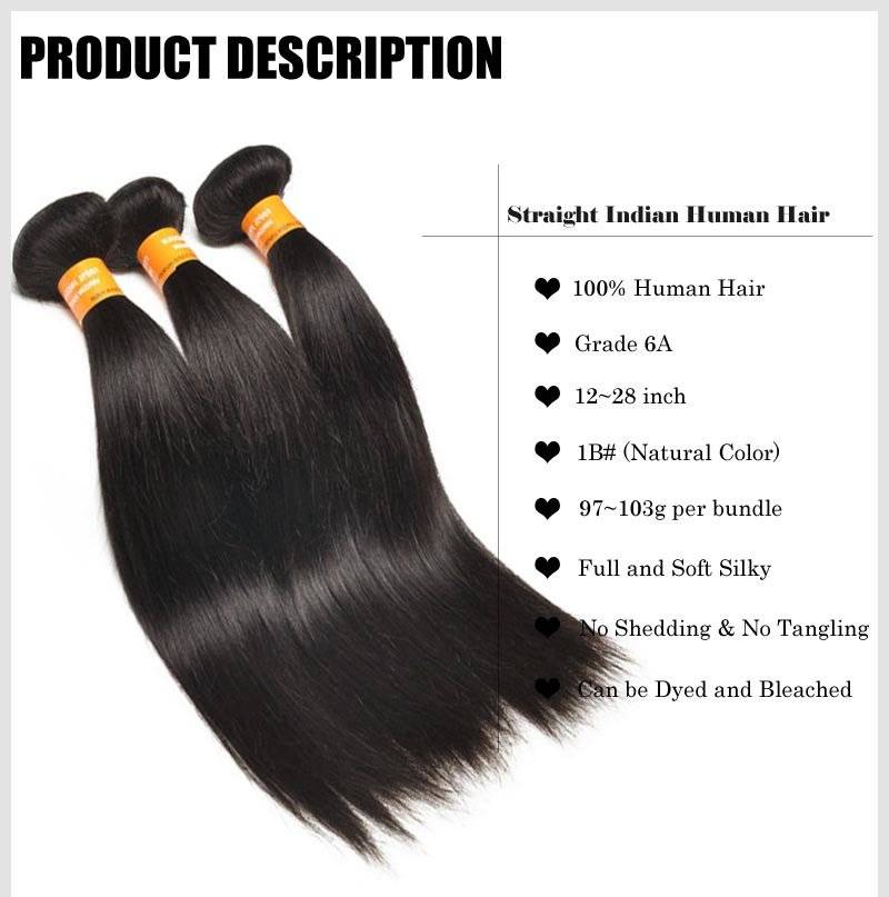 6A Indian Human Hair Straight 12"~28" 100g/pcs [only one bundle]