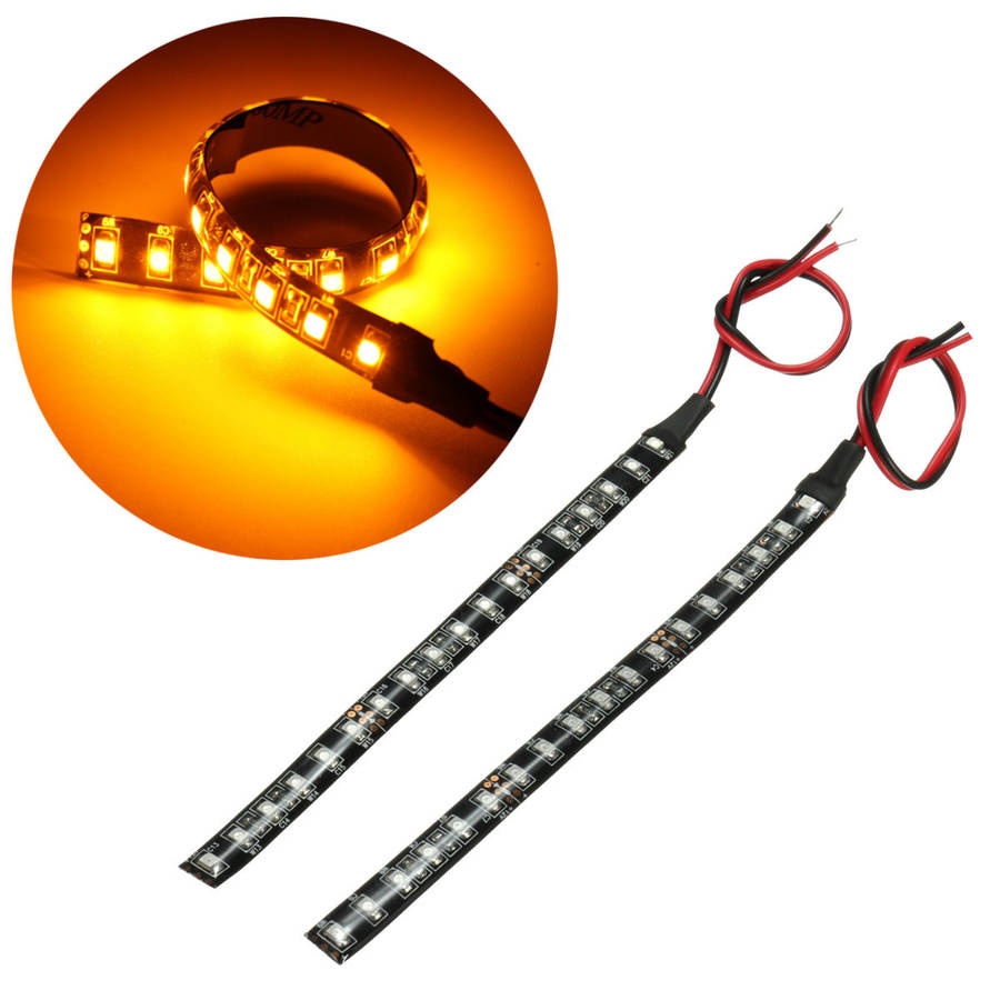 Description: Each strip is 6 inches long and contain 18 LEDS. Protect the environment,Long service life and low power consumption. Super bright, increase safety when driving at night. It is easy to installation and innovative design universal style. The fully waterproof with silicone to protect the LED strip and shrink adhesive tube to seal the wire connection. With flexible and durable strip, can be cut to your expected length. Specification: Material: Silicone+LED Number of LED: 18 pcs/per strip Led Chip: 3528 Voltage: 12VDC Size: 14.5cm x 1cm (LW) Wire Length: 14.5cm Power: 1W/pc Lumen: 36lm/pc Placement on Vehicle: Front/rear/left/right Light Color:Bright Amber Waterproof: IP67 Note: 1.We provide clear pictures, measurements where possible. Please check as much as possible to make sure the item is the one that you need. 2. Please allow 0.5-1 inch difference due to manual measurement.(1 inch=2.54cm) 3. Instruction is not included. Package Included: 1 X Pair LED Waterproof Flexible Light Strip